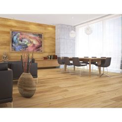 - Grubość 14 mm i warstwa dębowa 2,5–3,5 mm: To typowa konstrukcja warstwowa. Jedno lub dwa profesjonalne cyklinowania w życiu takiej podłogi to realne założenie. Nie myl tego z parkietem litym.