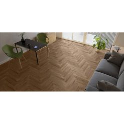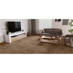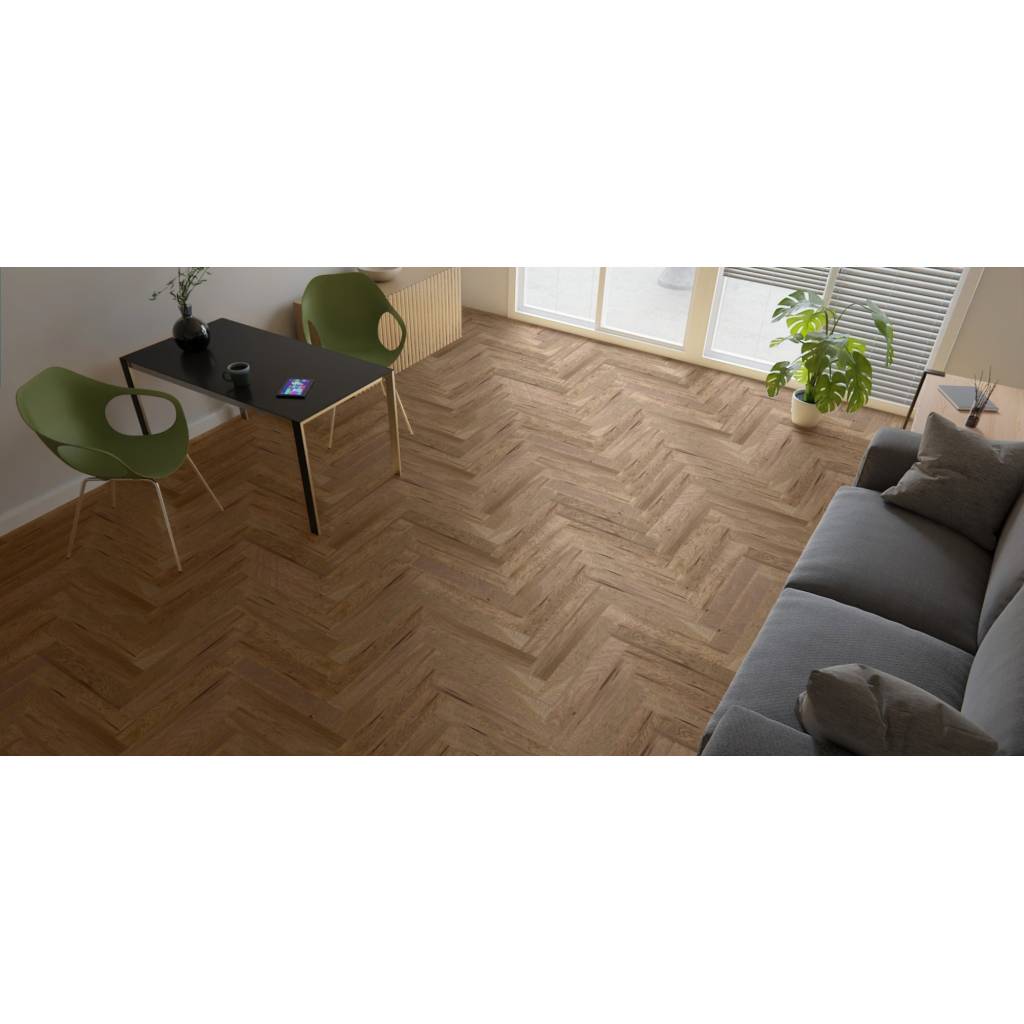 • 4‑stronna mikrofaza: Wyraźne krawędzie klepek podkreślają rytm jodełki. Efekt? Większa głębia i lepsze maskowanie drobnych nierówności podłoża.