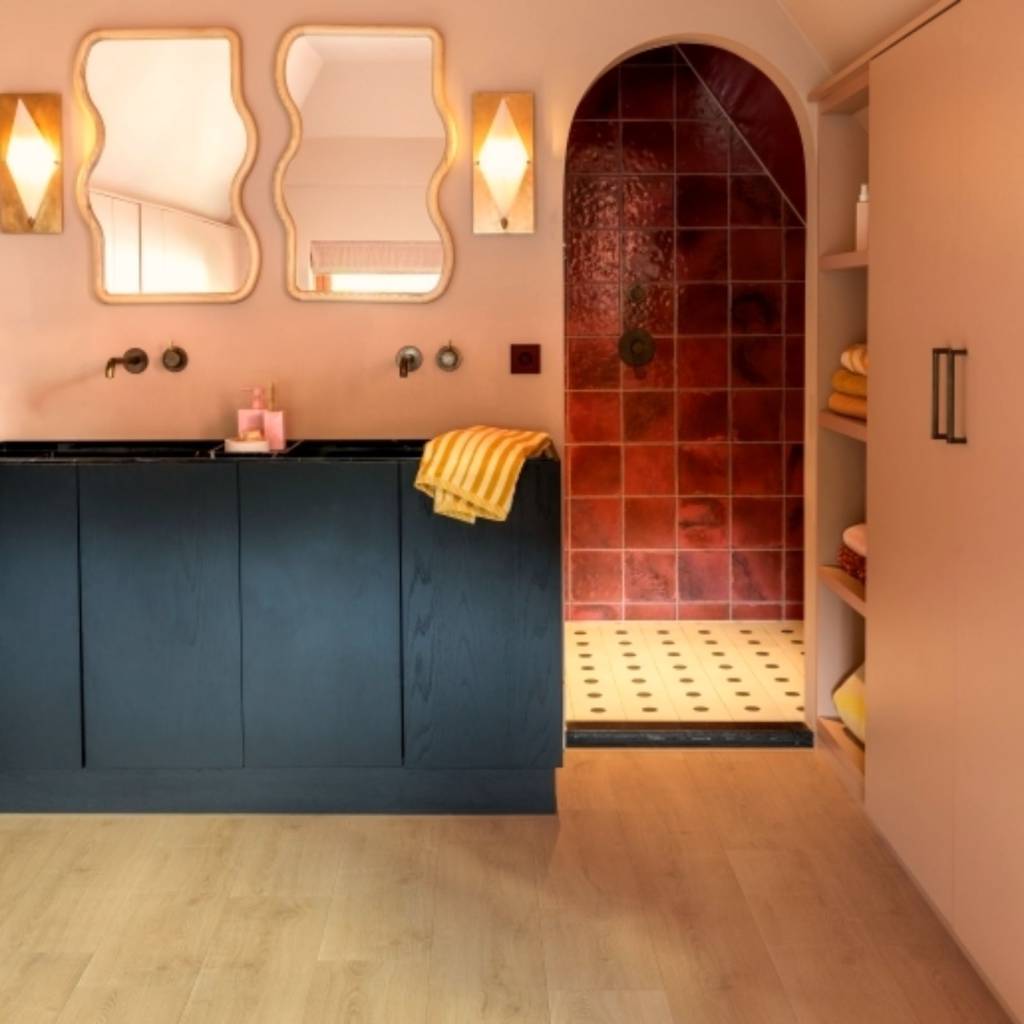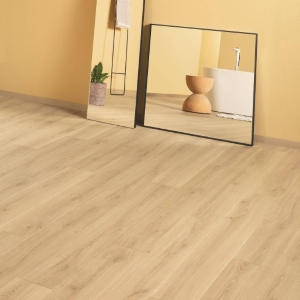 W modelu SIG4763 V-fuga jest zintegrowana z laminatem, co ogranicza możliwość penetracji wody w głąb struktury panelu. Montaż krok po kroku? Zacznij od pomiaru wilgotności podłoża — dla jastrychów cementowych wartość nie powinna przekraczać 2% CM. Sprawdź też poziom wilgotności względnej powietrza i temperaturę roboczą przed układaniem. Niedopilnowanie tych parametrów to najczęstsza przyczyna późniejszych problemów.