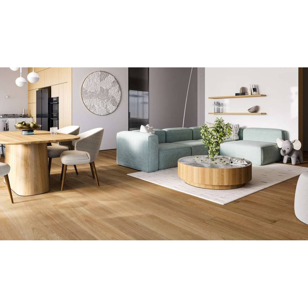 • Rdzeń mineralny (SPC): Niska higroskopijność, wysoka gęstość, odporność na wypaczanie po zalaniu — kluczowe w kuchni i łazience.
