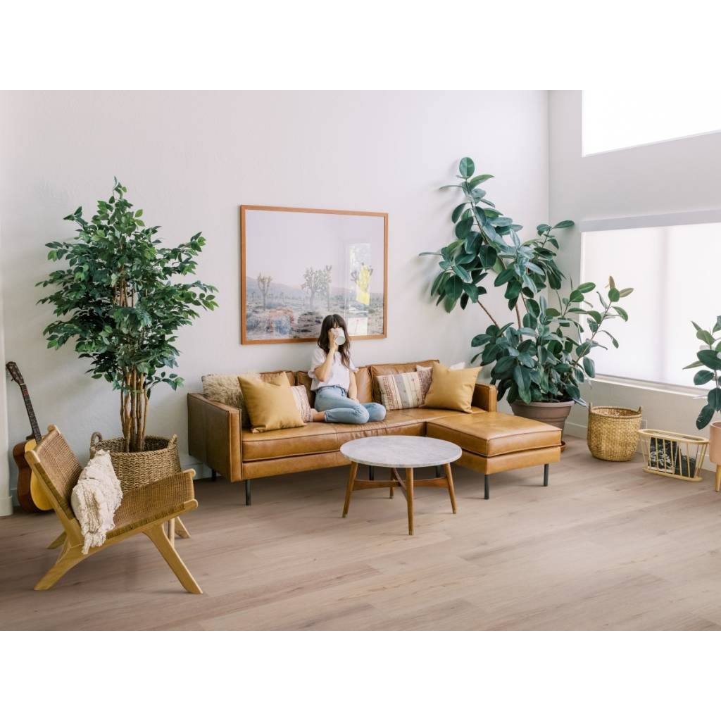 Krótkie fakty: montaż do 400 m2 bez dodatkowych dylatacji świadczy o niskiej rozszerzalności cieplnej. To ma znaczenie przy dużych przeszkleniach i ekspozycji na słońce — tam, gdzie tradycyjne LVT lub panele drewniane mogą „pracować” i odkształcać się.